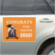 Celebrate your graduate with a custom magnet sign. Celebrate graduates in a unique way with this custom magnet. The large version features the student's custom photo and name. The small version fits on your bumper or even fridge! Easily adjust either to your school's color.