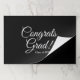 Congrats grad black and white custom classic script text and class year graduation party Paper Placemats.