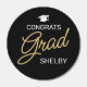 These graduation Hershey chocolate candies are a fun way to say "congratulations" to this years graduate. The design features the word "grad" in a modern elegant gold handwriting script against a black background. Personalize these chocolate party favors with the name of the graduate.