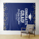 Arrived quickly and looked great! Had to steam out the wrinkles from shipping but it was easy to do! I added gold curtains to the sides to extend the photo backdrop area. I changed the color to royal blue! Perfect! The printing looked just like the photo online! Excellent job!