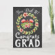 Fun rustic faux chalkboard style fonts read "Congrats Grad!" on a gray textured background. Inside the card is adjustable text with a statement of congratulations with script name option for the sender.