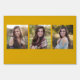 Celebrate your high school or college grad with this three-photo yard sign. With a golden yellow background, this sign features text on one side including name, school, year and plans, and three photos on the back. The gold color is perfectly suited to many school but it can also be changed by clicking "customize further." The photos can also be removed.