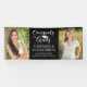 Celebrate 2 graduates (twins, siblings or friends) with a photo banner sign featuring a chic calligraphy script typography title CONGRATS TO OUR GRADS and personalized with the graduates' names, class year and school in white against an editable black background color you can change to a school color or coordinating party theme color. ASSISTANCE: For help with design modification or personalization, color change, resizing, transferring the design to another product or you would like coordinating items, contact the designer BEFORE ORDERING via the Zazzle Chat MESSAGE tab below or email makeitaboutyoustore@gmail.com.