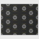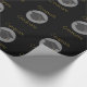 Wrapping paper for a graduation gift designed with a black graduation cap with a semi-transparent circle behind set on a black background. Congrats graduate written in a modern style font in gold.