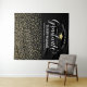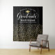 Send off your grad in luxe style with this black and gold confetti graduation backdrop! The design features "Congrats to Our Graduate" in flowing white script, a gold grad cap, and personalized fields for the graduate's name and school above a cascade of shimmering gold confetti dots on a sleek black background. Customize all text for a glamorous celebration centerpiece. Perfect as a photo wall, dessert table, or party focal point.