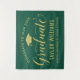 Elegant graduation party backdrop sign congratulates and celebrates your grad in style! Design features a grad cap, "Graduate" in script, and modern custom text that can be personalized with the graduate's name and school. Dark green and gold colors can be customized.
