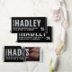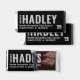 Custom Hershey's chocolate bar graduation party favors are designed to resemble the classic style of the iconic chocolate brand. Design features the graduate's first name in bold text with school name, class year, a congrats message, and thank you wording that can be personalized on the back. Note, the black, silver, and white colors can be changed to match school or party colors.