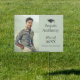 Celebrate your graduate with a custom yard sign featuring a photo of the honoree. This design has a sage green background decorated with a graduation cap and custom text that you can personalize with your info. The gender-neutral design works well for any gender. The design repeats on the back of the sign.