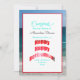 Congrats you've made it (any name) happy happy retirement, white card with aqua, black and red typography with a beach and ocean border. The back has a place for a personal note if desired. Just pick your paper style