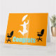 Does he have the opportunity to work his way up through the employee ranks? So this card is made for him. A character with an umbrella jumps from an office chair to another on a yellow background.