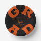 GRAD in bold orange lettering curves around the edges of these black background graduation paper bowls - perfect for serving snacks, salads, desserts and more. MATCHING items and more pre-done color combinations in our store.