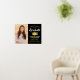 Add a personalized touch to a college or high school graduation celebration with a custom photo black, gold and white 18"x24" foam board sign. Picture and all text are simple to customize. Design features a black background, yellow mortar board cap, modern typography, stylish script calligraphy, and one photo of the graduate, such as a senior picture or image from the commencement ceremony. Please note that gold is printed color, not metallic foil. This graduation party sign is an elegant way to celebrate the special day. Congratulations to the graduate!