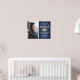 Add a personalized touch to a college or high school graduation celebration with a custom photo navy blue, gold and white 18"x24" poster. Picture and all text are simple to customize. Design features a dark blue faux brushed metallic background, faux foil mortar board cap, modern typography, stylish script calligraphy, and one photo of the graduate, such as a senior picture or image from the commencement ceremony. Please note that gold is printed color, not foil. This graduation party sign is an elegant way to celebrate the special day. Congratulations to the graduate!