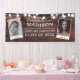Congratulations to the grad! Celebrate the occasion with this pretty rustic wood photo graduation banner with string lights and space for 2 photos.