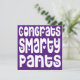 Say congrats loud and clear in amusing style to the grad or anyone you want to say well done to with this large bold typography Congrats Smarty Pants in a white quirky font with heart motifs on a purple background. Easily personalise with your message on the reverse. You can also change the purple background to another color if you wish as well as the font and color for the greeting on the back via the Customise Further option.