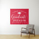 Make your grad party pop with this bold red graduation backdrop! The design features "Congrats to Our Graduate" in flowing white script, a grad cap icon, and personalized fields for the graduate's name and school. Customize all text to match your school colors and celebrate in vibrant style. A festive focal point for photo walls, dessert tables, or party entrances.