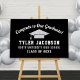 Congratulate your graduate in style with a modern personalized graduation foam core poster sign, featuring their class year with silver colored grad cap, and sporty custom text for the grad's name, school, and class year. Black, white, and silver gray colors can be customized to match your party colors.