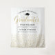 Elegant graduation party backdrop two graduates features a black colored grad cap, "Graduates" in faux gold foil colored script, and modern custom text that can be personalized with the graduates' names and schools. A pattern of gold falling confetti dresses up the background - perfect party prop for guests to stand in front of for pictures with the grad! Multiple Sizes are available.