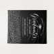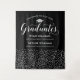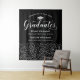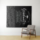 Celebrate two graduates in sleek style with this black and silver confetti graduation party backdrop! The design features "Congrats to Our Graduates" in flowing white script, a silver grad cap, and two personalized name and school fields above a cascade of shimmering silver confetti dots on a rich black background. Perfect for twins, siblings, or joint graduation celebrations. Customize all text for a polished celebration centerpiece.