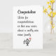 A funny congratulations card, featuring a bad poem and illustration, that says congratulations in Latin or is referring to a tv show about a nice crime family. Our character, tillie, is smiling, wearing a fedora and holding a machine gun in one hand and a bouquet of flowers in the other.