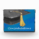 You or someone you know is graduating! Yay! Send along your congratulations with our stylish design featuring our original art of a blue graduation cap with a yellow tassel against a textured black background and the word, Congratulations on the bottom. Custom designs available.