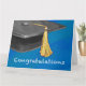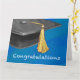 You or someone you know is graduating! Yay! Send along your congratulations with our stylish design featuring our original art of a blue graduation cap with a yellow tassel against a textured black background and the word, Congratulations on the bottom. Custom designs available.