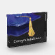 You or someone you know is graduating! Yay! Send along your congratulations with our stylish design featuring our original art of a blue graduation cap with a yellow tassel against a textured black background and the word, Congratulations on the bottom. Custom designs available.