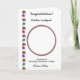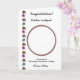 An elegant foil pattern card, featuring multicolored graduation hats on the side and a big photo at the center of the front page. White English Roses and a diploma with a cool message inside the card.