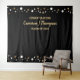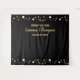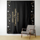 Featuring an elegant black background adorned with shimmering gold and white confetti dots, this backdrop exudes sophistication and celebration. Personalize it with the graduate's name and a heartwarming greeting, making it a unique and cherished part of your graduation decor.