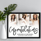 This horizontal graduation sign features three photos at the top, fading into a white gradient toward the bottom for a clean and modern look. “Congratulations” is displayed prominently in large handwritten script, with the graduate’s name, “Class of 2026,” and school shown below in classic black fonts for a polished and readable design.