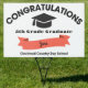 Celebrate your 5th Grade Graduate with a bold black, red, and white yard sign. Customize with the graduate's first name on the banner and include their school name or a special message at the bottom.