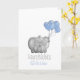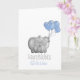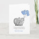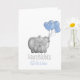 Personalized congratulations baby boy card showing an elephant with blue balloons.