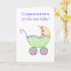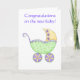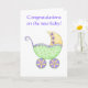 Congratulations Baby Buggy Carriage Green Yellow Card