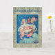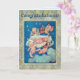 Very sweet vintage image of baby angels bringing new baby from heaven. Added lace border and background make this a truly unique, gender neutral, congratulation card for new parents.