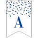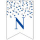 Congratulations banner with dark blue and silver confetti pattern. Perfect for graduations, retirements, baby showers, bridal shower and more.