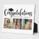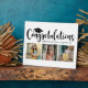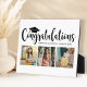 A classic graduation plaque featuring a sweeping Congratulations headline in script with a black graduation cap accent, the graduate's name, class year, and three senior photos on a clean white background. A timeless, versatile tabletop keepsake that pairs with any decor style. Perfect as a graduation party display or a meaningful gift for your graduate.