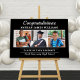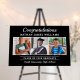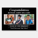 A striking graduation welcome sign in bold black featuring elegant Congratulations script above the graduate's name and a trio of photos capturing their journey. The Class of Graduate text and school name sit below, framed by clean white rule lines. A dramatic and polished display for the graduation party. Fully customizable with your own photos and text.