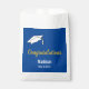 The customizable graduate's name is in white text on a deep blue background. A white graduate's cap is above the faux (not foil) gold text says 'Congratulations'. You can use the text at the bottom to indicate the year the student is graduating.