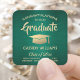 Add a personalized touch to college or high school graduation announcements and invitations with these custom green and square stickers / envelope seals. All text is simple to customize. Design features a green faux brushed stainless steel background, metallic foil look graduation cap, stylish modern typography, and handwritten style script calligraphy. Please note that gold is printed color, not foil. Makes an elegant addition to graduation party favors and decorations. Congratulations to the graduate!