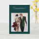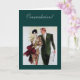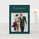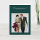 Vintage illustration of a very happy and very stylish couple. Dark green background to the card and above in lighter green script "Congratulations"