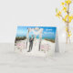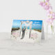 Congratulations card for a beach wedding. The design is a painted beach, which was originally a photo, an archway, bride and groom, and flowers. Except for the beach, all illustrated. Thanks to Design Cuts for some of the elements in the design.