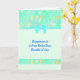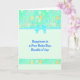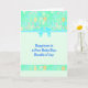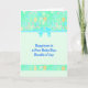 Pretty green and blue card with a partial floral and light green background, blue words and a light blue bow.