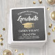 Add an elegant personalized touch to college or high school graduation party decorations with these custom black, white and gold paper napkins. All text is simple to customize. Design features a faux chalkboard background, faux foil mortar board cap, stylish modern typography, and handwritten style script calligraphy. Please note that gold is printed color, not metallic foil. Congratulations to the graduate!