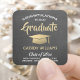 Add a personalized touch to college or high school graduation announcements and invitations with these custom black, white, and gold square stickers / envelope seals. All text is simple to customize. Design features a dark grey faux chalkboard background, gold foil look graduation cap, stylish modern typography, and hand written style script calligraphy. Please note that gold is printed color, not metallic foil. Makes an elegant addition to graduation party favors and decorations. Congratulations to the graduate!