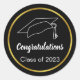 Congratulations Class of 2023 Black White Gold Classic Round Sticker