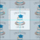 A pale blue low poly graduation cake pattern fabric with text that you can change "Congratulations" and the "Class Of". Featuring a low poly grad cap and scroll and two tiers of white iced cake - low calorie. A fun addition to your Graduation Party celebrations!