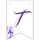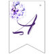Design features the words, "Just Married!" in an elegant violet script. Each letter is accompanied with a violet bouquet. Year of wedding is featured on flag between words. Designed to coordinate with the "Elegant Violets Catholic Wedding Suite."