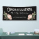 Elegant and modern styled wedding congratulations banner for the newlyweds. Wish your happy couple an inspirational quote "May Your Love Always Grow" or other personal message. Monogram with the couples names to create your own wedding banner. Perfect for engagement parties too! Stylish banner includes pink flowers with green leaf accent. Black background. Typography style congratulations text.