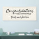 Simple "Congratulations on your engagement" banner for the engagement party. Black text (customizable with Zazzle's design tool) on a cream/white (also customizable) background. Personalized with the names of the newly engaged couple.
