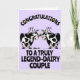 Two cute cartoon cows show their love for each other under a sign of congratulations. They truly are a legend-dairy couple....they're udderly wonderful. A lovely, light hearted fun design ideally suited to LGBT couples and civil partnerships.